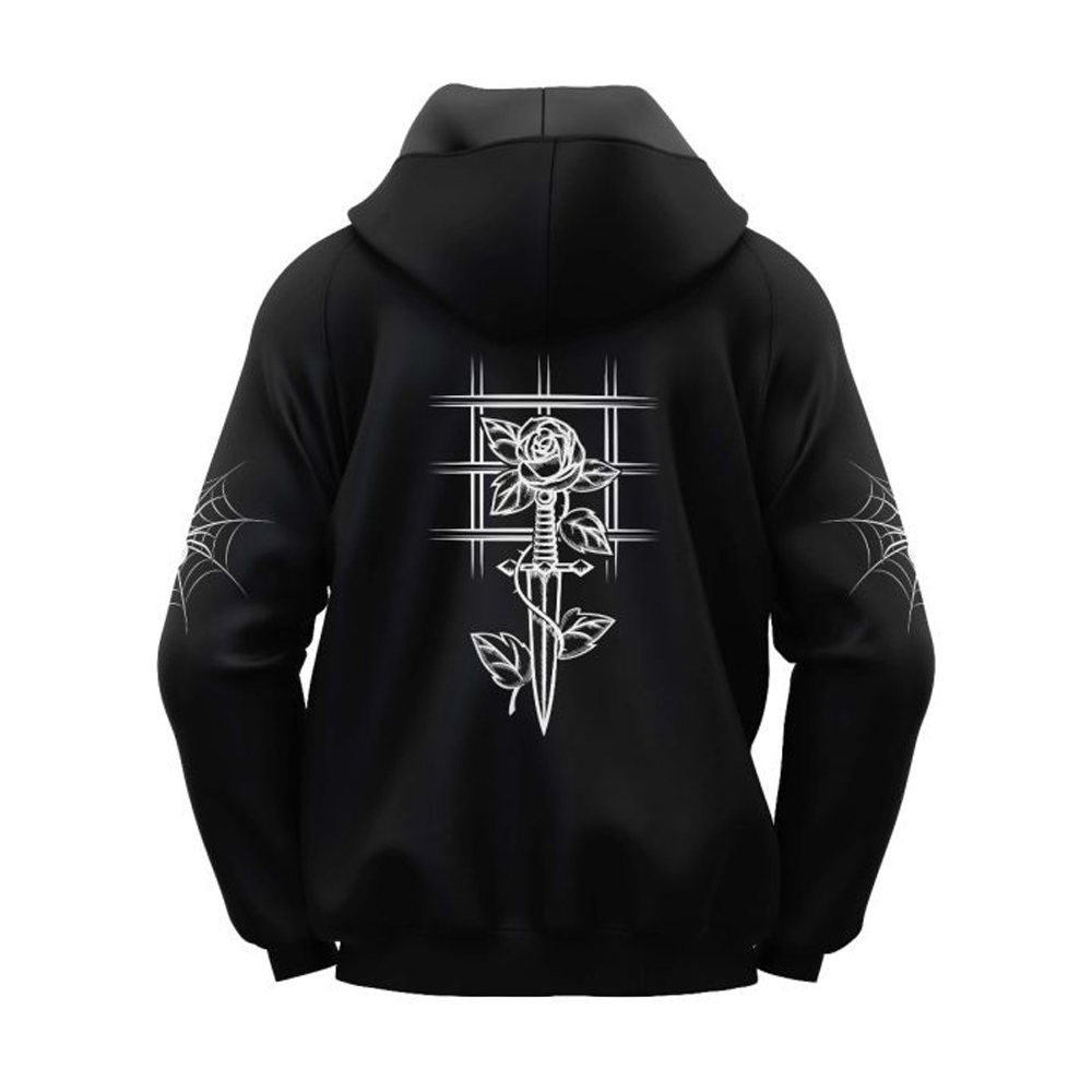 This goth hoodie is a great addition to your gothic clothes collection! It’s a grunge skull skeleton hoodie that can work with any edgy clothes collection!